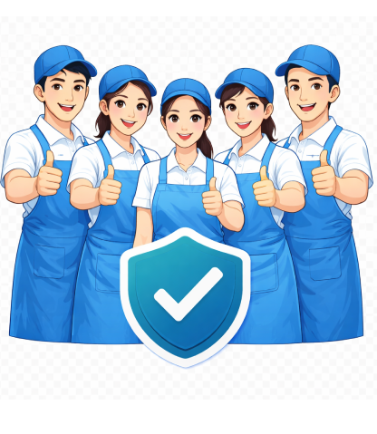 พนักงานทุกคนผ่านการอบรมมาตรฐานการทำความสะอาดและมารยาทในสถานที่ทำงาน มีระบบ Checklist รายพื้นที่ Supervisor ตรวจงานตามรอบ พนักงานสำรองพร้อมทดแทนทันทีโดยไม่ต้องแจ้งล่วงหน้า รายงานคุณภาพรายเดือนส่งถึงผู้บริหารโดยตรง และสัญญาบริการที่ระบุขอบเขตงานและความรับผิดชอบอย่างชัดเจนทุกข้อ